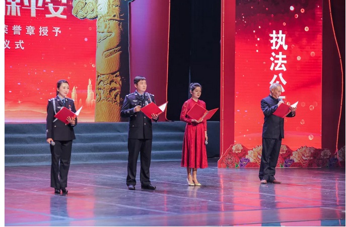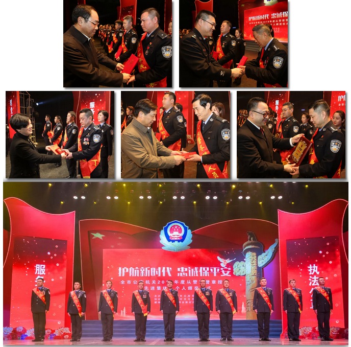 儀式上,市政協(xié)主席章松,市委常委、政法委書記、市公安局黨委書記、局長黃杰、市人大常委會副主任李玉萍,市政協(xié)副主席葉建,市檢察院檢察長顧玫帆分別為從警10周年、20周年、30周年的民警代表和2018年度全市公安先進集體、個人授章頒獎。