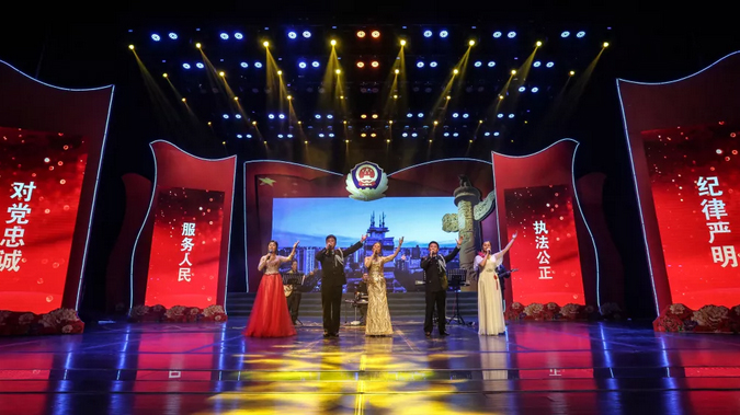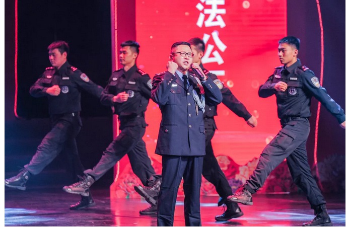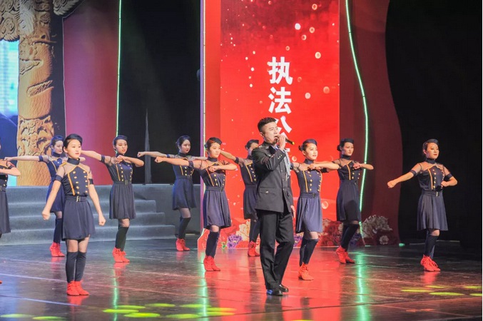 “自從穿上這身警服,我就扛起了安寧托付。”一首《中國警察》唱出了公安民警的責任與擔當,也拉開了文藝演出的帷幕。