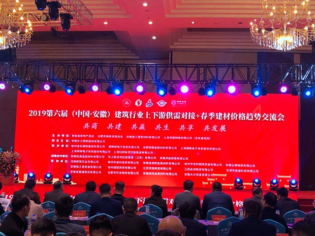 3月28日,由安徽省房地產(chǎn)商會、合肥市鋼鐵貿(mào)易商會、安徽建工建筑材料有限公司、上海領(lǐng)建網(wǎng)絡(luò)有限公司(百年建筑網(wǎng))主辦的2019第六屆(中國·安徽)建筑行業(yè)上下游供需對接+春季建材價(jià)格趨勢交流會在合肥天鵝湖大酒店隆重召開。參會房地產(chǎn)業(yè)主、施工總承包企業(yè)130余家,各類材料供應(yīng)商170余家,與會人員700余人;集團(tuán)董事長秦祥銀應(yīng)邀參加了此次盛會。