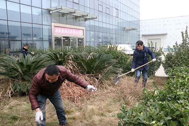 ,1月28日上午物業(yè)部王經理帶領部分員工對市場內的綠化帶、樹枝以及雜草等進行清理修剪。