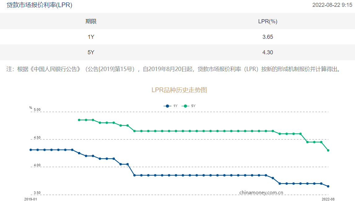 1年期LPR為3.65%,5年期以上LPR為4.3%,