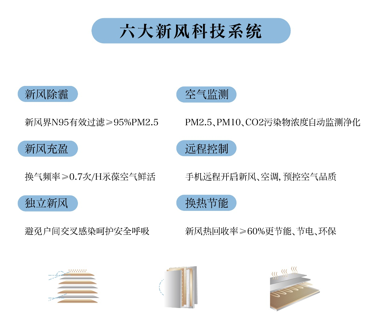 在朝陽(yáng)壹號(hào),獨(dú)立新風(fēng)的關(guān)懷下,能有效避免戶間交叉感染的風(fēng)險(xiǎn),同時(shí),室內(nèi)智能空氣監(jiān)測(cè)系統(tǒng),可以實(shí)現(xiàn)自動(dòng)調(diào)節(jié)換氣,頻率≥0.7次/H,永葆鮮活的空氣品質(zhì)。