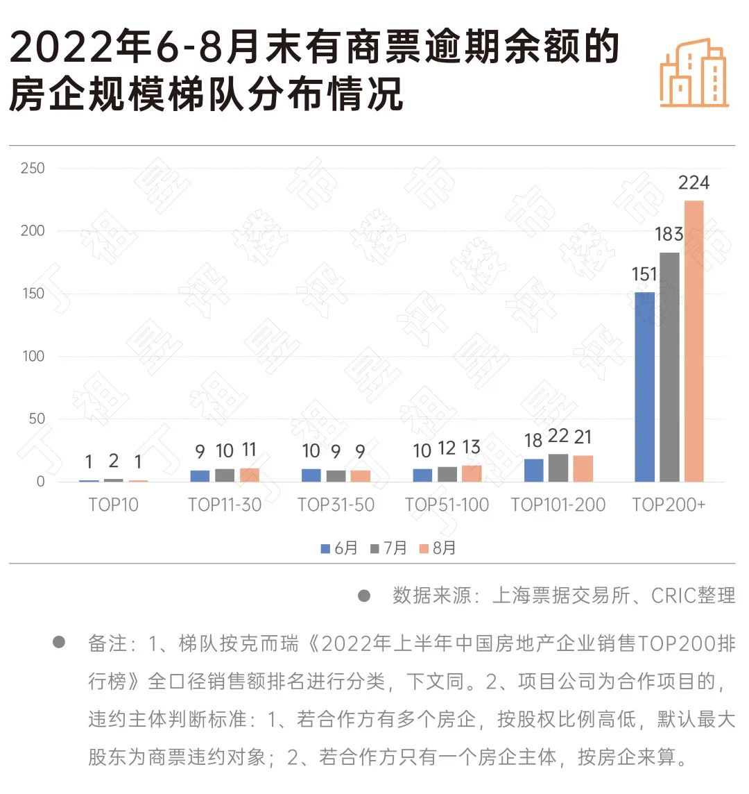 雖然TOP50房企集團(tuán)主體出現(xiàn)商票違約的數(shù)量比較少,但8月商票逾期的項(xiàng)目公司有近七成來自TOP50房企。