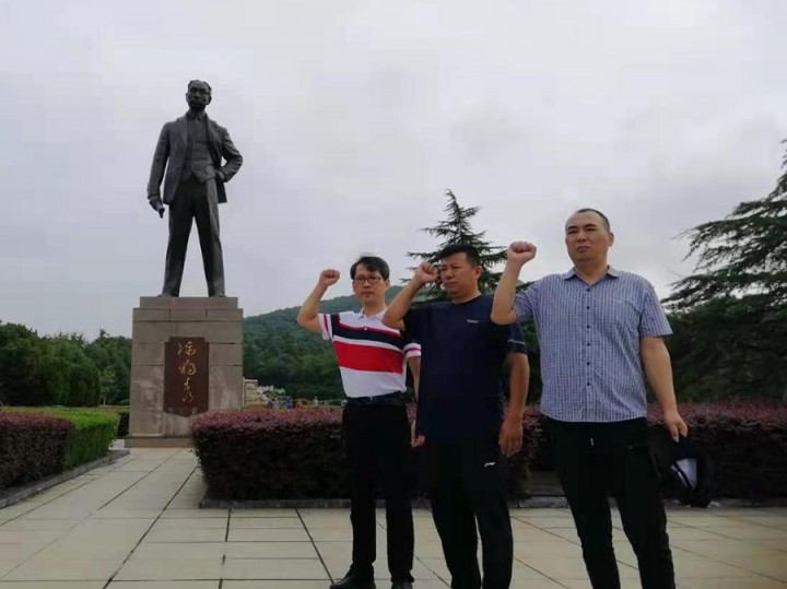 參加活動的全體黨員向陳獨秀陵墓三鞠躬。在陳獨秀塑像前通配集團黨支部書記王學軍帶領大家,緊握右拳,莊嚴宣誓,重溫入黨誓詞?!叭朦h誓詞”雖短,但字字千鈞,是每一名共產黨員入黨初心的真實寫照和莊嚴許下的錚錚誓言。