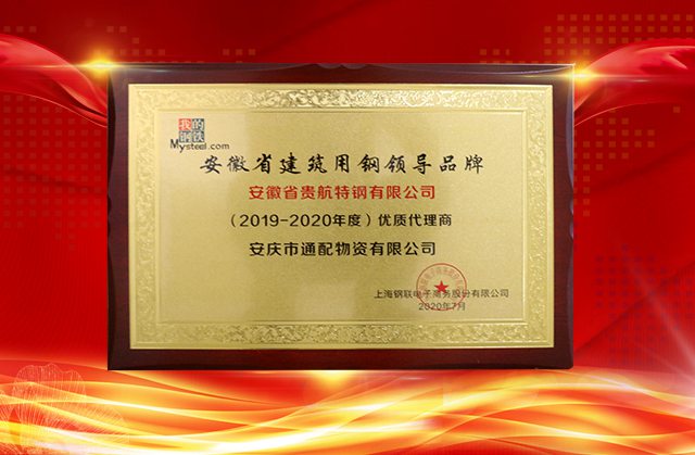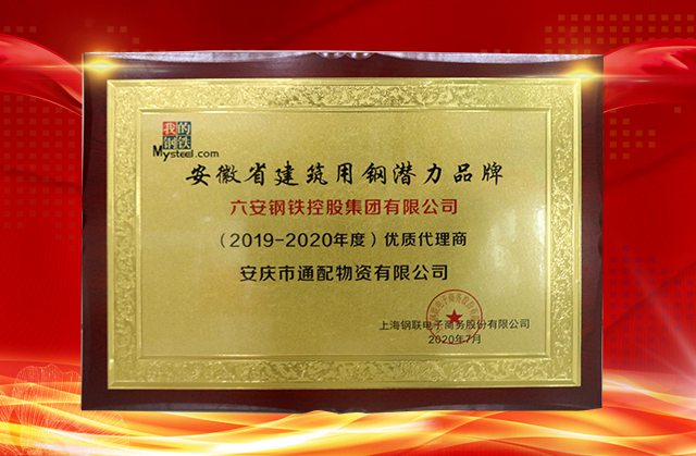 在本次大會(huì)上,對(duì)獲獎(jiǎng)的優(yōu)秀企業(yè)進(jìn)行了授牌儀式,Mysteel參考多年來(lái)各貿(mào)易單位年度經(jīng)營(yíng)量、年度業(yè)績(jī)、公司規(guī)模、市場(chǎng)影響力等多維度經(jīng)營(yíng)指標(biāo)進(jìn)行篩選,安慶市通配物資有限公司憑借出色的業(yè)績(jī),在眾多的貿(mào)易商中脫穎而出,分別榮獲“安徽長(zhǎng)江鋼鐵股份有限公司”、“安徽省貴航特鋼有限公司”、“六安鋼鐵控股集團(tuán)有限公司”優(yōu)質(zhì)代理商榮譽(yù)稱號(hào)。這充分彰顯了公司在全國(guó)鋼鐵貿(mào)易綜合服務(wù)領(lǐng)域的綜合實(shí)力與品牌認(rèn)知度。